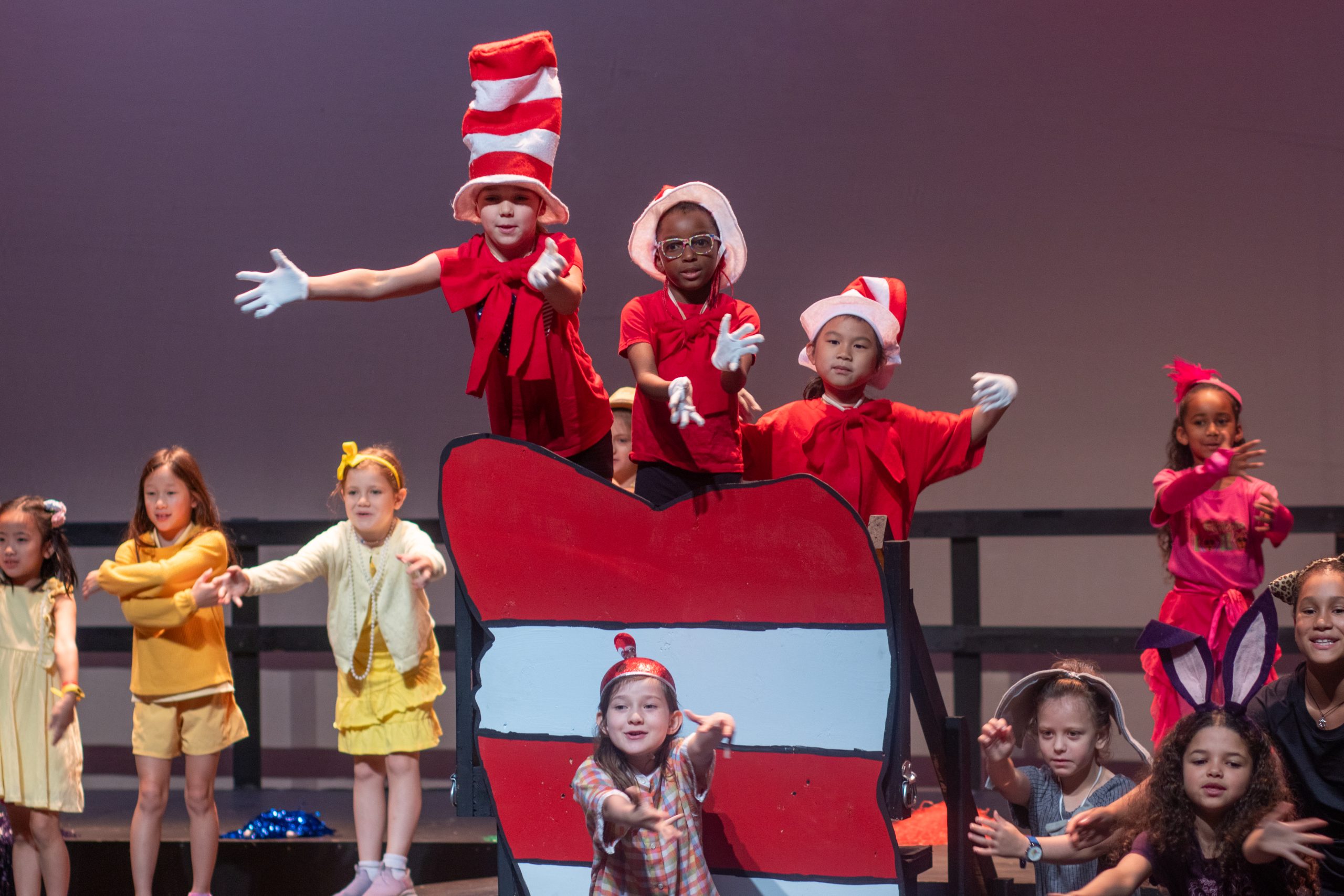 In just three weeks, our young students were able to produce a whole 30-min musical while also learning all about the technical elements that happen on stage as well. Students put on an incredible production of fan favorite, Seussical! They showed off their dance and singing skills that they developed over the three weeks with their teachers!